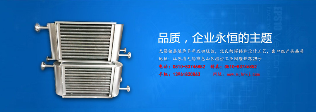 無錫銘嘉換熱科技有限公司是生產(chǎn)散熱器的專業(yè)工廠。 產(chǎn)品有:高溫水或蒸汽散熱器、高溫導(dǎo)熱油散熱器、表面空氣冷卻器、油冷卻器鋁制串片式暖氣片、空氣冷卻器、翅片管換熱器